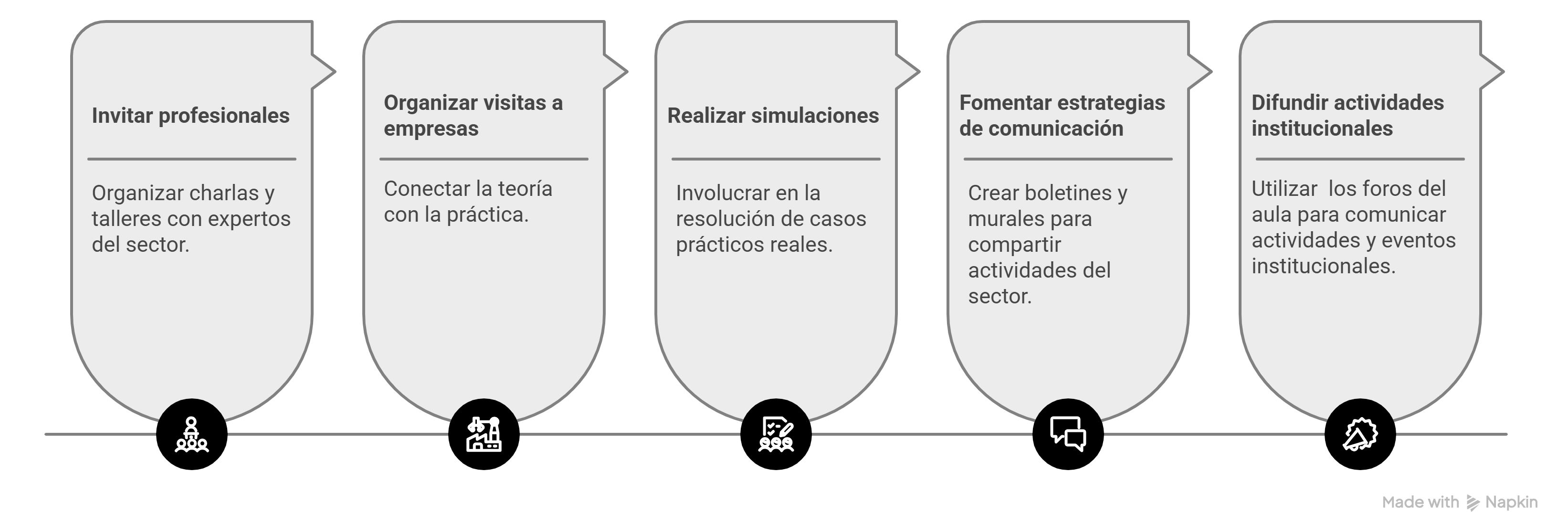 • Organizar visitas a empresas o instituciones para conectar la teoría y la práctica.